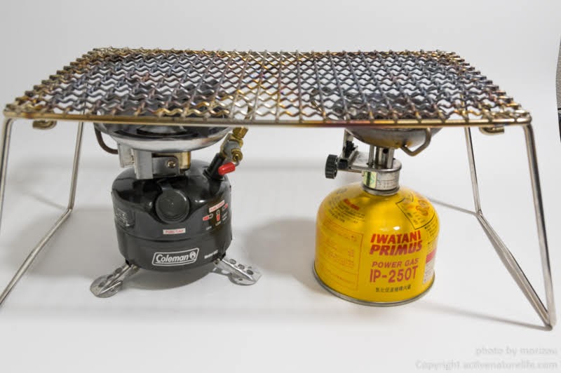 また、このユニバーサルグリルを使うと、手持ちのイワタニプリムスIP-2263とフェザーストーブをツーバーナー的に使用することができます。