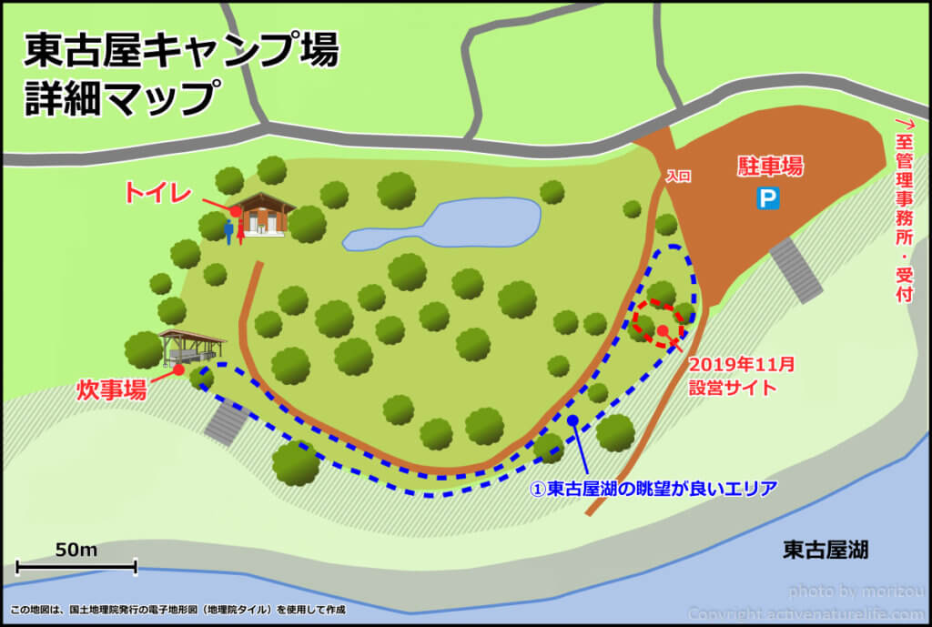 | 設営エリア | ①東古屋湖の眺望が良いエリア |
