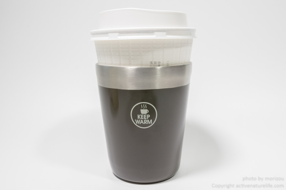 この商品を一言で説明すれば、コンビニで購入したレギュラーコーヒーをカップごと保温できる容器です。